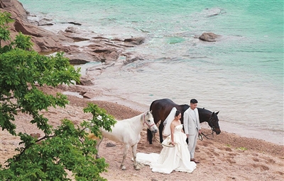 新人们在市南区海滩留下爱的纪念。市南区委宣传部供图