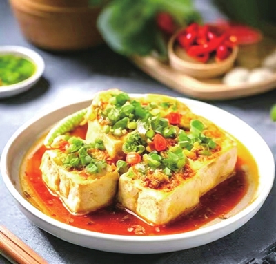 做好的酿豆腐个个圆鼓鼓、饱囊囊,可蒸可煎,可煲可煮,放入油锅里煎炸至两面金黄,吃起来焦脆可口,或者是用砂锅小火长时间煮。在一碗三鲜汤中,加入几块豆腐酿肉,是清亮汤汁中“吊”鲜的秘密。做好的酿豆腐鲜嫩滑香,味道很是鲜美。当然,还可以酿入鱼肉、虾仁等,既增加了口感,又有嚼头。