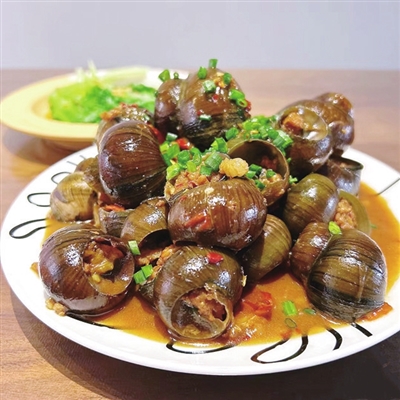 一碗热气腾腾的田螺酿端上桌,暗青的螺壳,撑一肚丰富的作料,嫩白的螺肉就藏在螺壳的深处,一口吸出,螺肉紧弹、猪肉鲜腴、笋丁爽脆,满口浓香,连汁带肉在口中细细咀嚼时,幸福感随之而生,让人不由地眼半眯口微张头轻晃,发出满足的长叹声:“真好吃啊……”