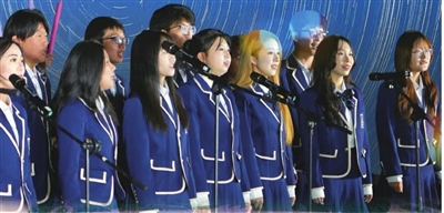 青岛大学艺术学院合唱团在音乐会上歌唱。 纪宣呈 摄