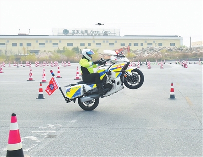 铁骑队员展示高超的驾驶技术。