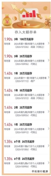 记者还注意到,从当前年化利率水平来看,大额存单与定期存款已齐平。根据手机银行App中的大额存单产品信息,多数银行的手机银行中在售的利率最高的大额存单产品年利率为1.9%,起存金额为20万元,存期3年,而且部分手机银行中已无在售3年期以上的大额存单产品,甚至有的手机银行显示暂无可购买的大额存单。