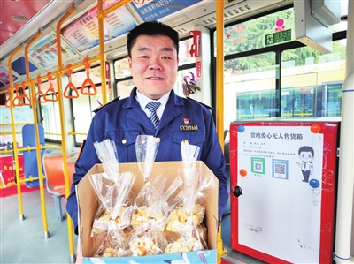 ◀公交6路线路新增赏鸥爱心无人售货箱。