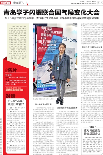 作为青岛五十八中ESG俱乐部的发起人,张文熙不仅展现了年轻人的声音和力量,更以实际行动诠释了新时代年轻人的责任与担当。她在联合国气候变化大会上的精彩发言,不仅让世界看到了中国青少年的风采,更让全球感受到了中国年轻人对气候变化问题的深刻关注和积极行动。
