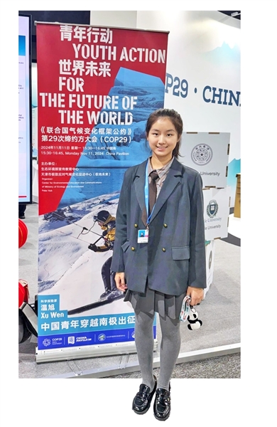 在中国角“生态文明与美丽中国实践”主题边会上,张文熙深入学习了解了中国为推进绿色可持续发展做出的努力,并在随后的几天参与了关于“节能降碳”“性别、气候与安全”等主题的边会和讲座,与专家面对面,进一步加深了对当前全球应对气候变化的认识,为以后的专业申请和职业发展方向做好准备。