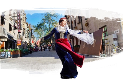 组图:上合组织国家特色民族服饰闪耀市南老城区。通讯员 董志刚 摄