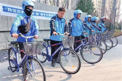 在星朗小区,工会协调配备了专供外卖员使用的自行车。