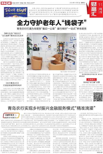 打造适老服务特色网点,适老服务更舒心。交通银行青岛分行围绕网点硬件设施、服务模式、产品创新等方面推出系列适老化服务举措,多方位为老年客户营造温馨服务环境与体验。交行青岛分行营业网点设立“蓝气球”敬老角,配置老花镜、专用软座等暖心的适老设施;2015年全市首家开设敬老优先服务窗口,给老年客户带来更多舒适感、安全感;为老年用户提供手机银行App“关爱版”,以更大字体、更简洁页面等贴心智能服务,让业务办理更省心、更顺心;为行动不便等特殊老年客户提供上门业务办理。交行青岛分行还与电视台合办“姣姣说消保”节目,连续4年制作500多期金融教育节目,结合日常工作中的真实案例生动讲解“养老诈骗”等套路陷阱,为市民及客户重点传授反诈防骗“锦囊妙招”,获得老年客群的高度认可。