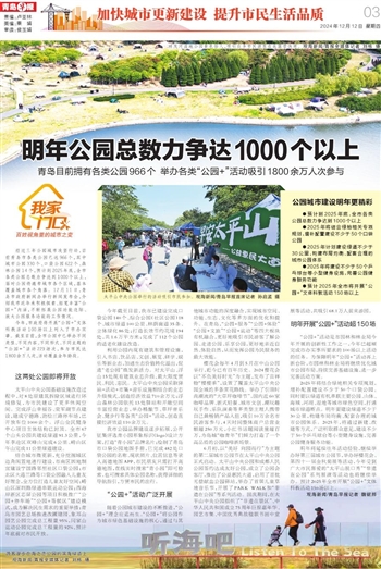 结合城市微更新,充分挖掘城区边角闲置地进行建设,市南区因地制宜建设宁国路邻里社区口袋公园;市北区大港三路等口袋公园融入儿童友好理念,全方位打造儿童友好空间;崂山区深圳路绿道串联运动公园;西海岸新区芯屏公园等项目积极推广“公园+停车场”“公园+等候区”建设模式,成为解决民生需求的重要举措;青岛市园艺总场推进改圃建园,象耳山园艺公园完成总工程量95%,闫家山运动公园完成总工程量的92%,预计年底前对市民开放。