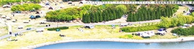 祥茂河湿地公园景色怡人,吸引众多市民游客在此露营休憩。观海新闻/青报全媒体记者 刘栋 摄