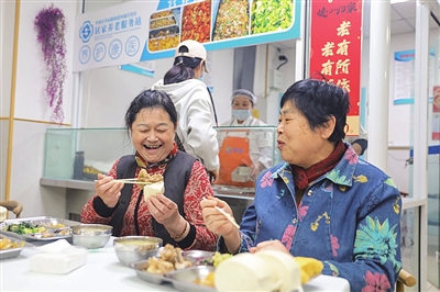 河南庄社区老年人在助老食堂用餐。
