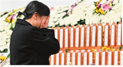 ◀12月30日,遇难者家属在韩国务安当地设置的灵堂内哀悼亲人。