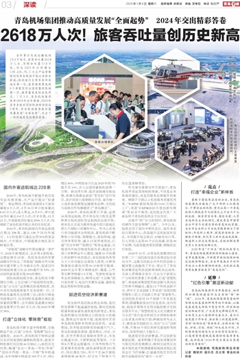 2024年,青岛机场不断提升航空客货运发展效能,生产运行跑出“加速度”。春运期间,青岛机场连续6天旅客量超8万人次,2月16日单日旅客量达8.63万人次;进入暑运,8月9日,单日旅客吞吐量达9.8万人次;年末岁尾,12月21日,年度旅客吞吐量达2556万人次,均刷新了青岛机场开航以来的历史纪录。
