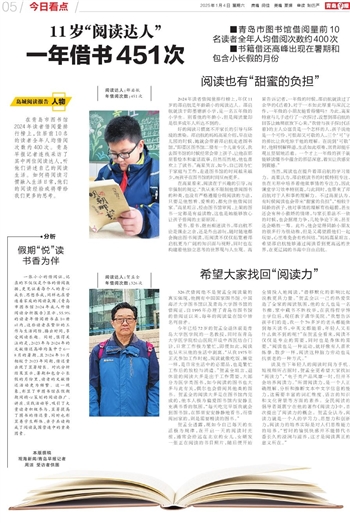 在青岛市图书馆2024年读者借阅量排行榜上,位居前10名的读者全年人均借阅次数约400次。青岛早报记者连线采访了其中两位阅读达人,听他们讲述自己的阅读生活。如何将阅读习惯融入生活日常,他们的阅读经验或将带给我们更多的思考。