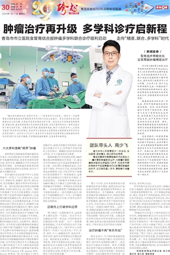 周少飞介绍,近年来食管胃结合部肿瘤发病率逐年增高,规范化的治疗途径及学科跨界,既是困扰学界的难点,也是发展的焦点。为了能够进一步给这类患者提供更为精准的诊疗,该院统筹组织胃肠外科、肿瘤科、放疗科、消化内科、医学影像科、胸外科等多个领域专家深入合作,并在市级公立医院首先成立了针对这一问题的MDT团队。这样一来,既能打破壁垒实现学科间的聚合,还能让患者获得涵盖诊断、治疗和康复环节的全病程一体化诊疗方案。打破边界的学科交流对学科的发展来说至关重要,同时也将成为复杂疾病患者获得精准化、个性化复合式诊疗的有力保障。