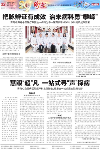 在心脏超声时得到“一站式”精准诊疗方案,让基层老百姓“隔空”看名医专家……青岛心血管病医院心血管病疑难超声诊疗中心有很多“绝活”,令患者受益和称赞。该中心于2019年开诊,融合了心脏超声科、心内科、心外科等多学科诊疗优势,为患者打造心脏病一站式诊疗模式,提供专业、一流的超声诊断,让广大心血管病患者既可以得到精准治疗,又可以少跑腿。去年新开展的5G远程超声会诊,又将国家级优质医疗资源下沉基层,使更多群众能够享受到常态化、高水平的远程超声医疗服务。
