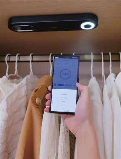 以衣柜场景为例,在衣柜中加入抑菌、消杀、净化智能模块后,能实现每天杀菌、消毒、除味。“近年来,随着人们对生活品质的追求逐步提高,人们对衣物的卫生问题也更加关注。在流感季节,人们回家后通常要洗手、挂衣服消毒,还得喷酒精,现在把这种智能模块放进衣柜,衣服就能自动杀菌消毒除味,非常方便。”王怀高说,这种智能模块不仅适用于日常衣物存储,还能满足特殊场景需求,像被褥、婴儿衣服以及贵重衣物的储存等。