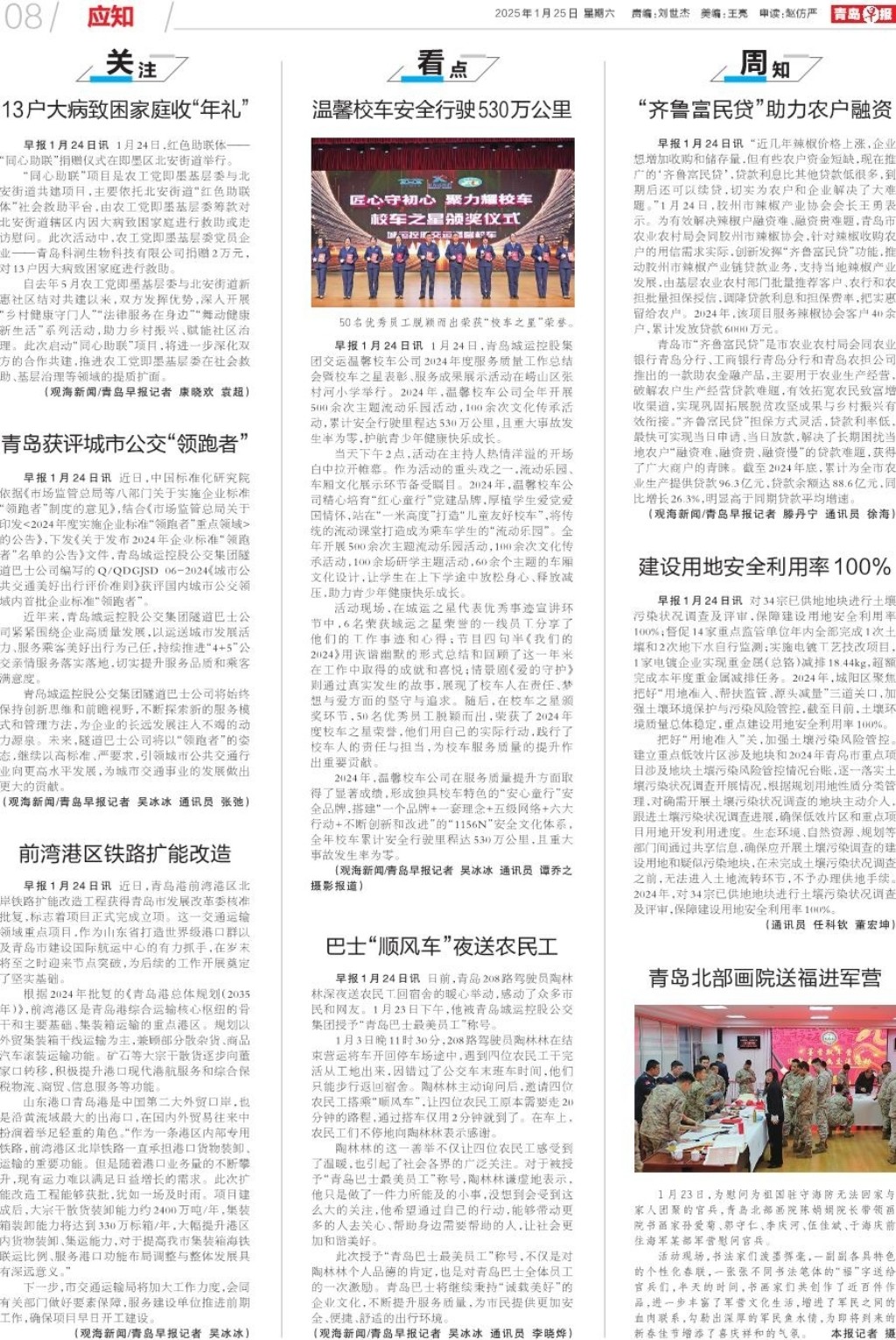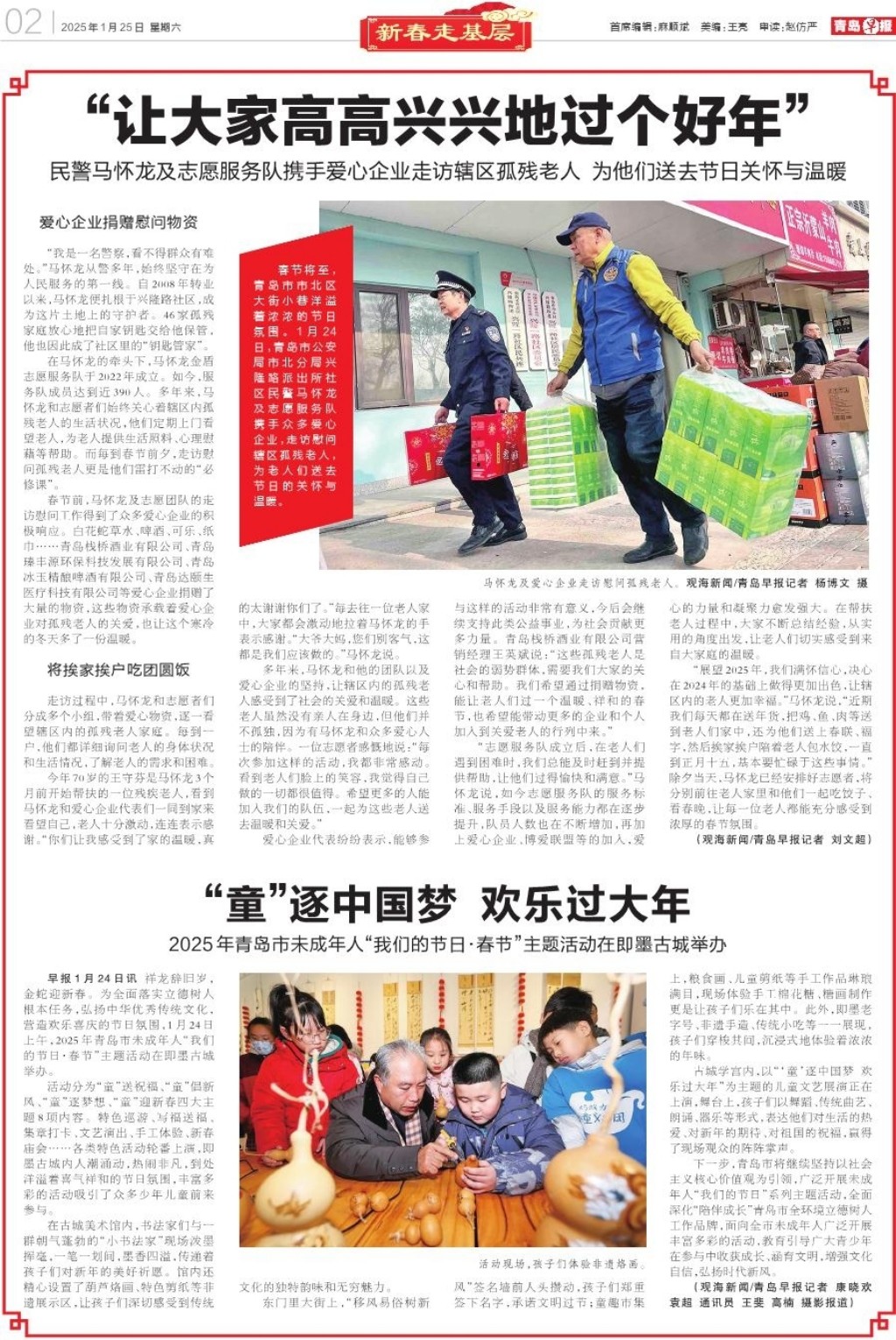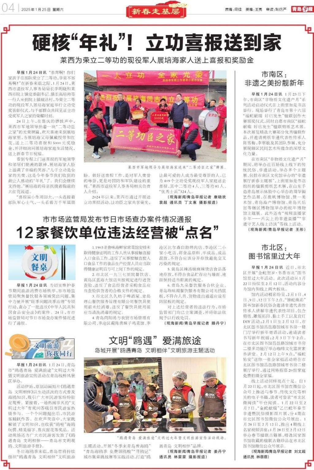 A01 头版 A02 新春走基层 A03 新春走基层 A04 新春走基层 A05 大爱青岛 A06 青岛面孔 A07 身边事 A08 应知 A09 周末 A10 周末·文艺评论 A11 周末·视角 A12 天下