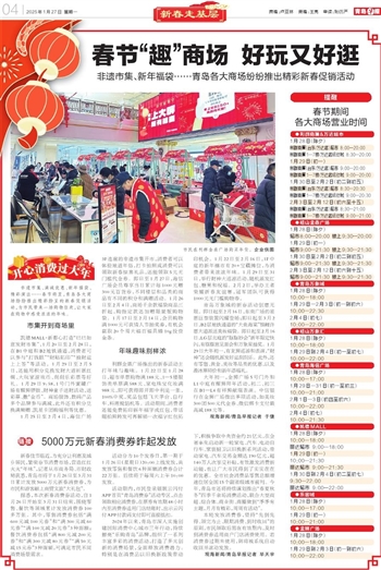 新春佳节临近,为充分让利惠及城乡居民,繁荣春节消费市场,营造红红火火“年味”,记者从市商务局、市财政局获悉,青岛市将于1月26日至3月31日累计发放5000万元新春消费券,为市民和游客献上商贸文旅“大礼包”。
