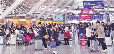 春运期间,旅客在青岛北站等候乘高铁出行。