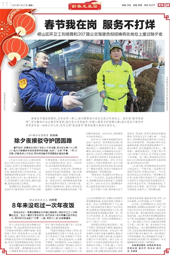 新春佳节阖家团圆时,总有这样一群人,依旧默默奋斗在自己的工作岗位上。他们是“城市美容师”,用辛勤的汗水让城市更美丽;他们是公交驾驶员,用暖心服务守护团圆之路;他们是这个城市中所有坚守在一线的工作人员,用自己的“在岗春节”换来团圆之夜的万家灯火。