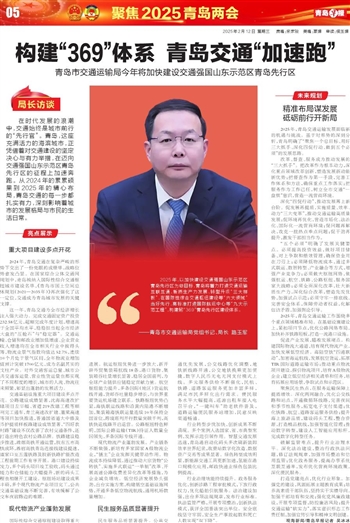 2025年,以加快建设交通强国山东示范区青岛先行区为总目标,青岛将着力打造交通运输互联互通、新质生产力发展、转型升级“三大样板”,在国际性综合交通枢纽建设等“六大领域”当好先行,高标准打造国际航运中心等“九大示范工程”,构建起“369”青岛先行区建设体系。