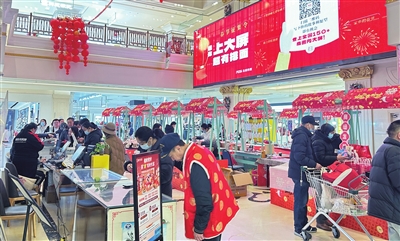 从小年到除夕,“新年福运爆棚”抽奖活动火热开展。活动规则十分诱人,只要在商场内任意品类购物达到一定金额,即可参与即开即兑抽奖,并且抽奖次数不设上限。利群崂山金鼎广场负责人介绍:“具体来说,超市消费满188元、服装类满588元、黄金珠宝家电满988元,消费者就有机会把丰厚奖品带回家。奖品有飞天茅台、山地自行车等,100%的中奖率让每一位参与的消费者都能收获满满惊喜。”