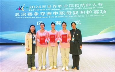 去年10月24日至26日,2024年世界职业院校技能大赛总决赛争夺赛(中职组)公共管理与服务赛道母婴照护赛项在山东莱阳卫生学校举行,来自全国的57支参赛队伍共计176名选手参与了此次竞赛。经过激烈角逐,由青岛西海岸新区职业中等专业学校教师李静与宗方霞指导的学生叶沿宏、叶梦涵和李金璐,以扎实的技能、稳定的心理素质和良好的团队合作,赢得了金奖,展现了青岛市代表队的优秀素质和积极风貌。这是青岛市在2024年世界职业院校技能大赛总决赛中夺得的首个金奖,实现了大赛升级后的开门红。