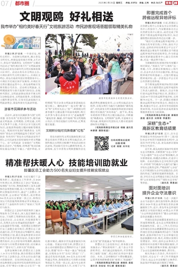 早报2月27日讯 一年春好处,相约文明行。为倡树文明新风,展示青岛文明有礼、热情包容的城市形象,2月27日,青岛市“鸥遇青岛 文明相伴”主题系列活动之“相约美好春天行”文明旅游宣传活动在青岛市新时代文明实践体验展示区举行。活动由青岛市文明办主办,市南区新时代文明实践中心、市南区文明办、青岛市海滨风景区管理服务中心、市南区历史城区保护发展局、市南区历史街区建设运营中心、青岛海明城市发展有限公司承办。活动将文明旅游、文明观鸥宣传与春天氛围巧妙结合,在栈桥风景区、文明旅游驿站同步开展文明互动体验游戏、文明旅拍服务、关爱海鸥主题科普宣传等,引导市民游客践行文明旅游理念,营造和谐有礼旅游环境。