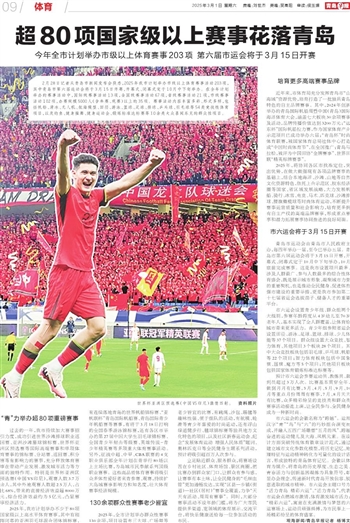 2025年,我市计划举办不少于80项国家级以上高水平体育赛事,其中有刚刚闭幕的亚洲羽毛球混合团体锦标赛,有连续落地青岛的世界帆船锦标赛、“亚帆联杯”青岛国际帆船赛、青岛国际青少年帆船赛等赛事,有将于3月18日打响的全国春季游泳锦标赛,还有各区市举办的第27届中国大学生羽毛球锦标赛、全国青少年射击等级赛、英雄传说-青少年精英赛等多项重大体育赛事活动。另外,征战中超、中甲、CBA联赛的4支职业俱乐部全年计划在青举行80场以上主场比赛,为岛城市民奉献系列顶级职业赛事。这些高品质体育赛事将吸引众多体育爱好者来青参赛、观赛,持续扩大岛城赛事影响力和知名度,壮大体育赛事经济规模。