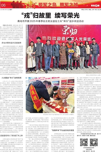 早报3月2日讯 戎装虽退,荣光不减。3月1日起,2025年春季自主就业退役士兵陆续返乡,青岛市退役军人事务局组织各区(市)开展“荣归”系列欢迎活动,在青岛胶东国际机场、青岛火车站、青岛北站、青岛西站等多个交通枢纽及退役军人服务中心(站)设置返乡接待站,为退役军人提供返乡迎接服务,营造“一朝戎装,一生荣光”的浓厚氛围。