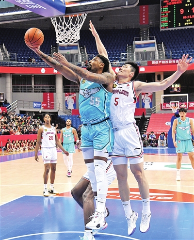 青岛队外援米奇(左)上篮。观海新闻/青报全媒体记者 王雷 摄