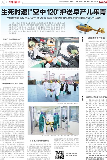 3月12日,青岛市妇女儿童医院新生儿转运中心联合青岛市120急救中心,利用医疗救援H135直升机,从烟台到青岛仅用时50分钟,成功完成山东省最小出生胎龄危重早产儿空中转运,这也是自青岛市危重新生儿转运中心成立以来的首例危重早产儿空中转运。昨日,记者联系到了青岛市妇女儿童医院新生儿医学中心副主任、NICU主任刘秀香,她表示目前患儿生命体征逐渐趋于平稳,但后续的诊治仍充满挑战。