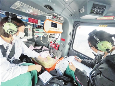 救援跨越山海,困难重重,而时间就是生命,容不得半点拖延。青岛市妇女儿童医院新生儿重症医学中心(NICU)转运团队经过快速、详细的评估后认为,航空转运更适合此次紧急救援。转运团队立即联系青岛市急救中心航空救援小组,迅速完成对天气状况、停机位置、是否有航空管制等情况的判断,最终确认此次航空转运满足起飞条件。养兵千日用兵一时,NICU医护航空转运团队前期经过多次120航空勘查应急演练,医护人员已经对整个飞行流程非常熟悉。“抢救物品、药品已检查,气管插管、吸痰等物品再次检查无误,呼吸机已调试完成……”训练有素的转运团队15分钟内集结完毕,整装待发。与此同时,青岛市120急救中心专业的航空转运团队也立即行动起来。