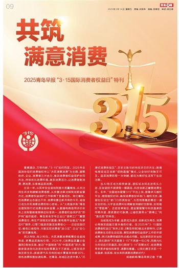当诚信成为本能、品质成为追求、创新成为常态,消费必将焕发超越交易本身的价值。在2025年“3·15国际消费者权益日”到来之际,《青岛早报》推出本期特刊,记录消费新生态的生动实践,展现消费者权益保护工作的丰硕成果,探讨消费领域的热点难点问题。站在新的历史坐标上,我们期待“天天都是3·15”不再是一句口号,而是内化为市场运行的基因,我们期待“3·15”的聚光灯,给消费者带来更多愉悦和享受、满意和尊重。让我们携手共筑一个有温度、有质感、有未来的满意消费新时代!