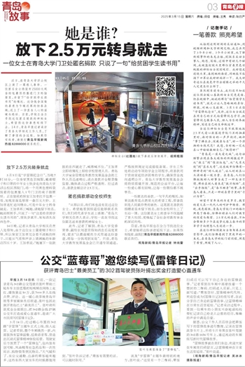 目前,青岛早报也在全力寻找这位女士,希望能将这份善意延续下去。如果你有线索,请拨打青岛早报新闻热线82888000联系我们。