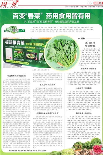 春回大地,万物复苏,大自然用一抹抹鲜嫩的绿意,为餐桌铺满了春日气息。香椿、蚕豆、荠菜、板蓝根青菜……这些春日限定的食材,被采摘、洗净、烹饪,最终成为餐桌上的一道道佳肴,用最质朴的鲜味,唤醒沉睡了一个冬天的味蕾。马维涛向记者介绍了几道春日小菜的做法,市民可以尝试一下。