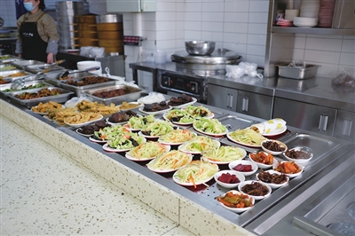 “这里的餐点特别丰富,健康又好吃,安全又卫生,我每天中午都过来打饭,特别方便。”一位前来打饭的居民向记者展示他刚刚挑选的菜品,只见他自带的饭盒中盛放着地三鲜、青瓜炒蛋、小炒肉等,菜色丰富鲜亮,香气扑鼻,看起来十分诱人。餐厅负责人王建伟告诉记者,餐厅能够为居民提供各类面食、炒菜、凉菜及粥类等90余种,每日菜单都是他亲自把关,提前筛选出来的,各类菜品有近30种。“我们餐厅为社区居民,尤其是老年人提供营养健康、荤素搭配的早午晚三餐。考虑到老年人的健康及生理要求,我们的菜品每一道都严格把控品质,做到少油、少盐、软烂易嚼好消化。”王建伟说。