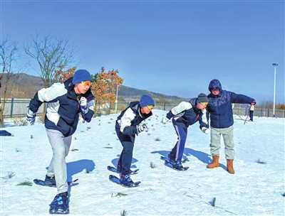 雪鞋走是一种需要特奥运动员穿着特制的雪地用鞋,在雪地上进行长短距离比赛的项目,不仅考验运动员的体能,更考验他们的耐力和心理素质。“每个孩子的身体情况、心理情况、接受能力等都不一样,必须根据他们的实际情况制定个性化训练方案,有时既要随时调整,又要保证正常的训练进度和目标完成。”拥有丰富工作经验的蔡嘉德,在指导陈亮和龚梓悦的训练过程中,遵循着循序渐进的原则,逐渐增加训练难度和强度,使他们能够快速适应并逐步提高水平。而在教授新技能的时候,他注重亲身示范,耐心引导运动员练习,同时给予适当的奖励和赞赏,以增强他们的自信心和积极性。“孩子们有时对危险的警觉性较低,所以不论在训练场还是赛场上,我都会格外对他们强调安全措施,定期进行安全教育,提高他们的安全意识。”蔡嘉德坚信,作为老师和教练,首先要理解队员,还要比他们付出更多的艰辛和努力,并以爱心、耐心和高度的责任心来统筹好训练、比赛,为孩子们的人生增光添彩。