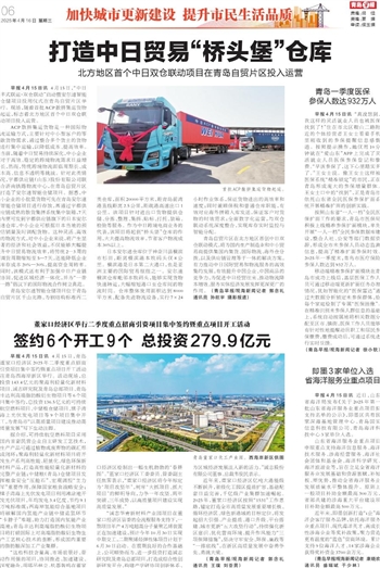 早报4月15日讯 4月15日,青岛董家口经济区2025年二季度重点招商引资项目集中签约暨重点项目开工活动在青岛西海岸新区举行。活动现场,总投资143.4亿元的聚海利轻量化新材料项目、诚志研究院及青岛总部项目、青岛丰达利高端脂肪酸衍生物项目等6个项目集中签约,总投资136.5亿元的可持续航空燃料项目、中储粮仓储项目、棋子湾海上光伏发电项目等9个项目集中开工,为青岛市“以高质量项目建设推动高质量发展”写下生动注脚。