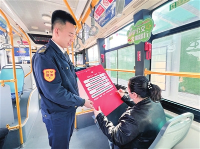 走进213路线DD1832号车里,记者看到在车厢内张贴着各式各样的提示标语,“轻声细语,让心灵更宁静”“保持安静,享受美好出行”等温馨提示格外醒目。“我们希望通过提示标语的提醒,让乘客在乘车时能自觉保持安静。”江世纪说。