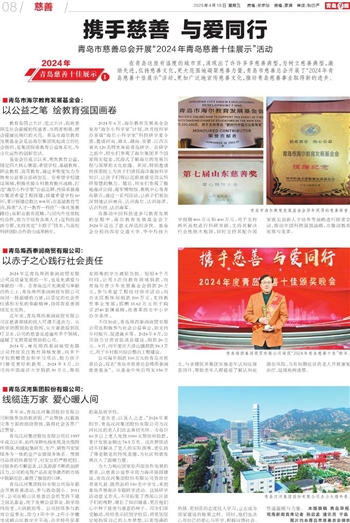 青岛埠西泰润商贸有限公司荣获“2024年青岛慈善十佳”称号。