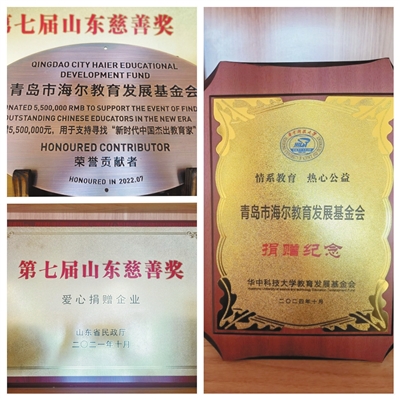 青岛市海尔教育发展基金会历年获得的慈善荣誉。