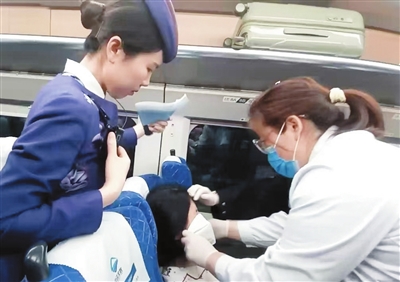 到达现场后,翟华晓立即组织乘务员疏散周围旅客,保持通风。翟华晓发现旅客双拳紧握,精神十分焦虑和紧张,伴有间歇性呕吐症状,她立即调节座椅靠背,让旅客更加舒适地坐在座椅上,同时为旅客舒展手臂、手指,舒缓旅客焦虑的情绪。