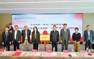 早报4月18日讯 4月18日,北京高朋(青岛)律师事务所盛启暨“法护明天”法律关爱未成年人公益品牌揭牌仪式举行。青岛市文明办、市司法局、市北区及法律界的百余名代表参加活动。