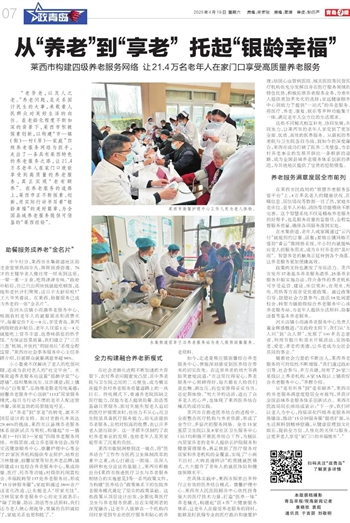 “老吾老,以及人之老。”养老问题,是关系国计民生的大事,承载着人民群众对美好生活的向往。在老龄化程度不断加深的背景下,莱西市积极探索创新,以构建“市—镇(街)—村(居)—家庭”四级养老服务网络为抓手,走出了一条具有莱西特色的养老服务之路,让21.4万名老年人在家门口就能享受到高质量的养老服务,真正实现“老有颐养”。在养老服务的道路上,莱西市正不断探索、创新,用实际行动书写着“银龄幸福”的美好篇章,为全国县域养老服务提供可借鉴的“莱西经验”。