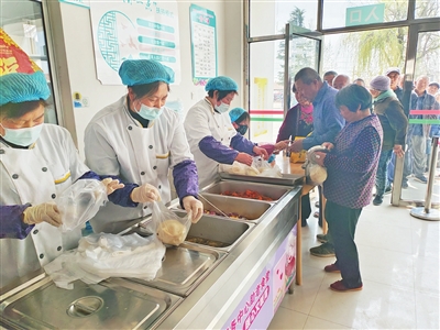 水集街道前车兰泊养老服务站为老人提供助餐服务。
