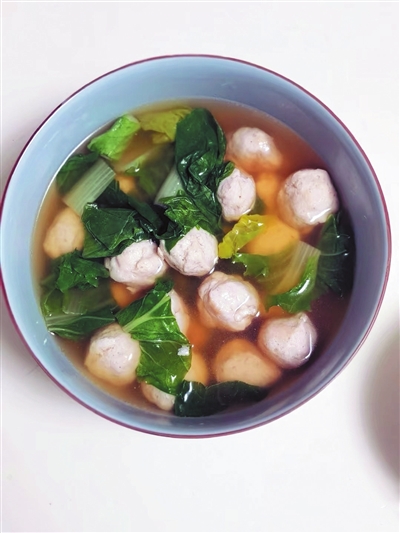 越来越多的新花样也都玩了起来:汤里加些别的调料,酸辣版鱼丸汤喝得鼻尖冒汗,甚是舒服;番茄熬成浓汁烩丸子,酸甜汤汁就着米饭,一不小心就多吃了两碗……