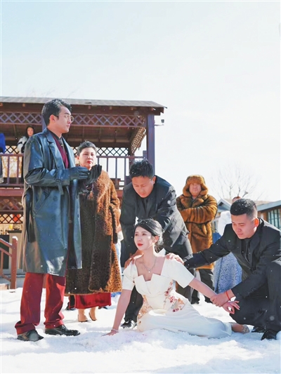 除了高强度的拍摄,为了塑造角色,演员们也常要面对各种各样的场景。在《恶有恶报不配为人妇》短剧中,零下14℃的天气下,宋菲儿穿着短袖在户外每天拍摄15个小时,并在户外上演跳水戏;在《妖妃》短剧中,拍摄周期7天,赶上发了4天高烧,她就顶着40℃高烧艰难地拍完所有重头戏。“虽然微短剧不及传统影视剧投资成本大,制作规模大,但是小的短剧团队也有20多人,大的短剧团队有两三百人,只要开拍就是成本,作为演员都不想因为自己而耽误大家的拍摄进度。”