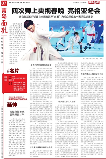 在第九届亚冬会开幕式《长歌颂冰河》中担任舞蹈编导和领舞、曾四次亮相央视春晚,两次在晚会开场舞担任领舞……青岛市技师学院青年舞蹈教师胡适,凭借“台上一分钟、台下十年功”的毅力,成功在全国舞蹈界“出圈”。由他编导的《波涛之上》《鼓舞龙腾》《丝路花雨》等成为全国观众喜爱的舞蹈节目。4月20日,青岛早报记者采访这位青年舞者,聆听他在舞台背后刻苦训练的故事。